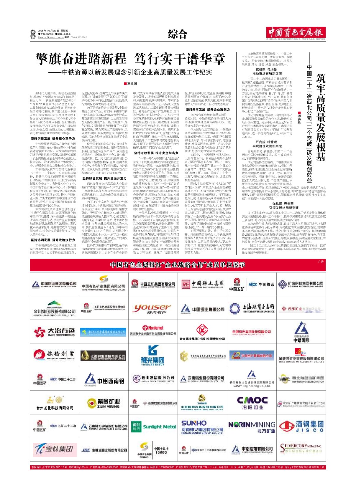 中國有色金屬報:筑牢高質量發(fā)展根基——中國二十二冶西北公司“三個突破”謀發(fā)展創(chuàng)效益